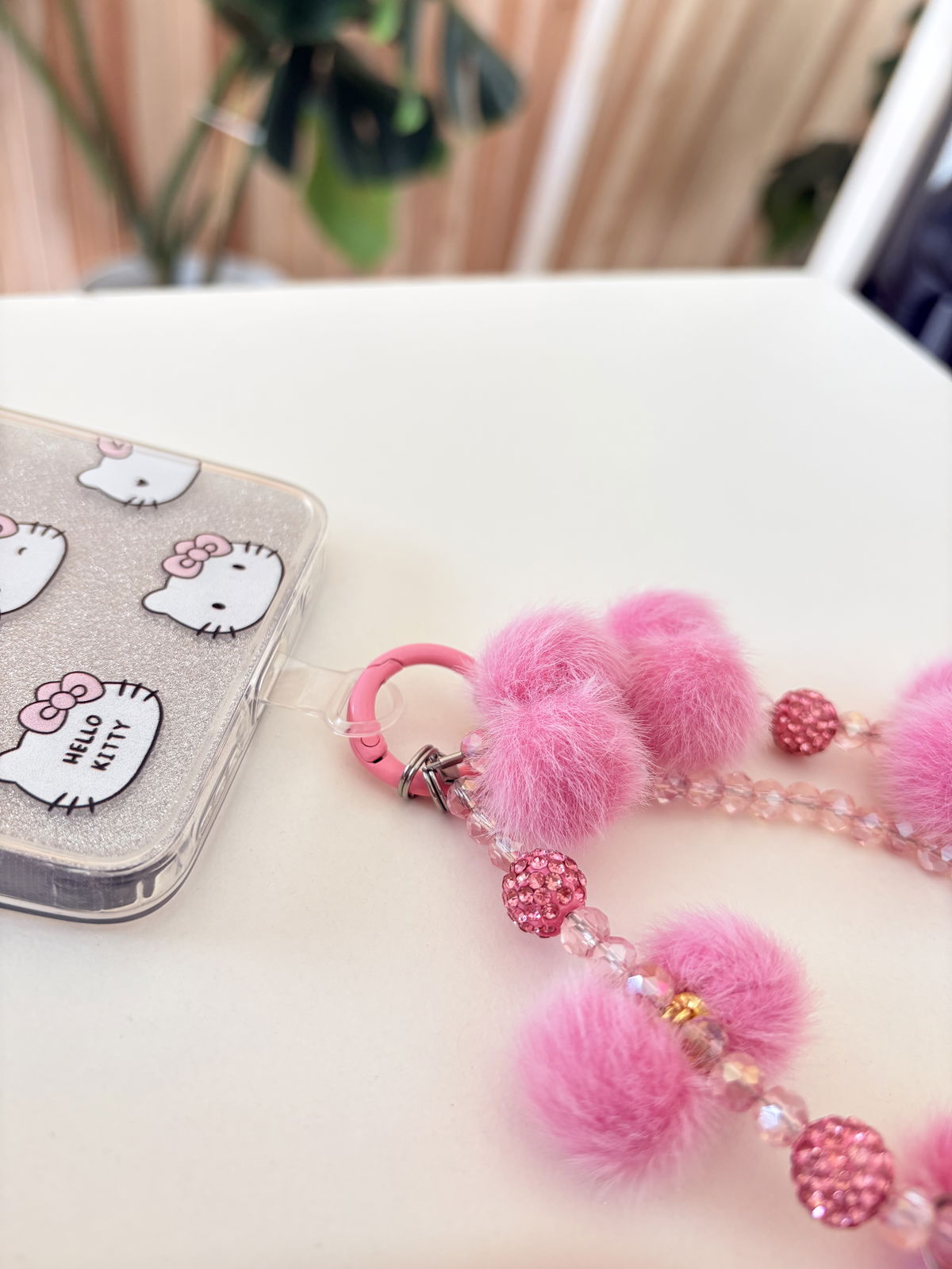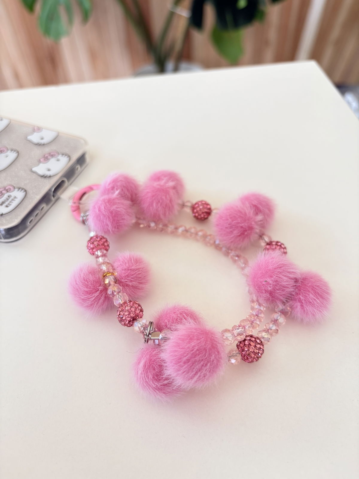 Holder muñequera Cristales y pompones - Rosa