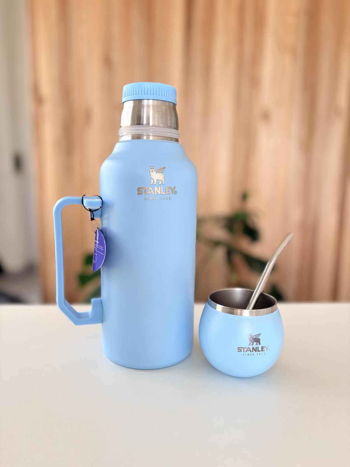 Termo Imitación Stanley 1.3L - Mate tapa + bombilla de regalo - Celeste